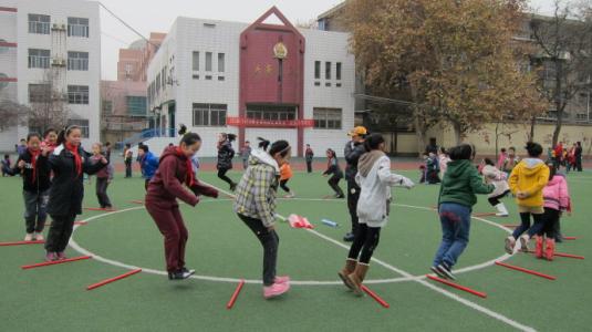 还有呼啦圈游戏,听裁判哨声开始比赛计时,走20米,时间最少者为胜。这个游戏让学生在游戏中学会坚持,培养毅力。